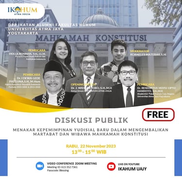 Ikahum Atma Jogja adalah ikatan alumni Fakultas Hukum Universitas Atma Jaya Yogyakarta yang solid, berdedikasi untuk saling mendukung, berbagi pengetahuan, dan berkontribusi pada almamater dan pengembangan hukum serta masyarakat.