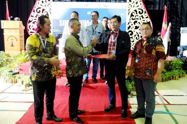 Ketua terpilih Ikahum UAJY Dr. Johannes Widjantoro SH MH mendapat ucapan selamat dari pimpinan sidang Munas Deddy Sukmadi SH MHum || YP-Ist