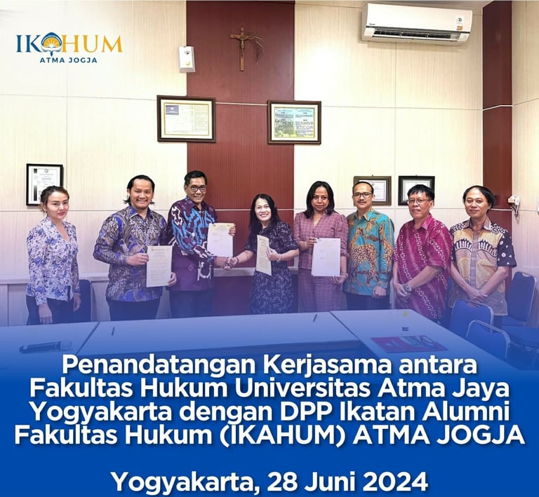 Ikahum Atma Jogja adalah ikatan alumni Fakultas Hukum Universitas Atma Jaya Yogyakarta yang solid, berdedikasi untuk saling mendukung, berbagi pengetahuan, dan berkontribusi pada almamater dan pengembangan hukum serta masyarakat.