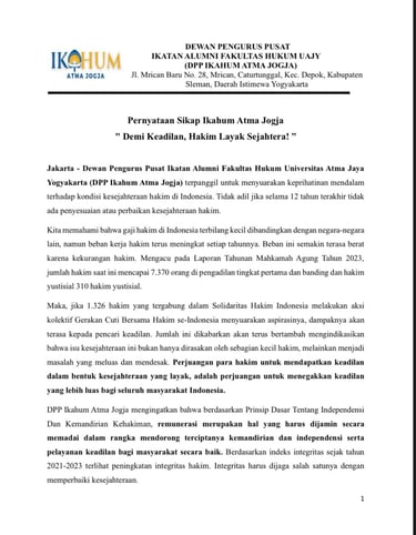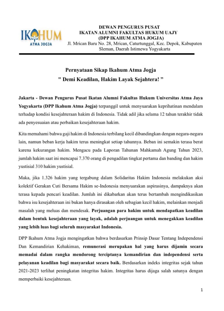 Pernyataan Sikap Ikahum Atma Jogja, "Demi Keadilan, Hakim Layak Sejahtera!"